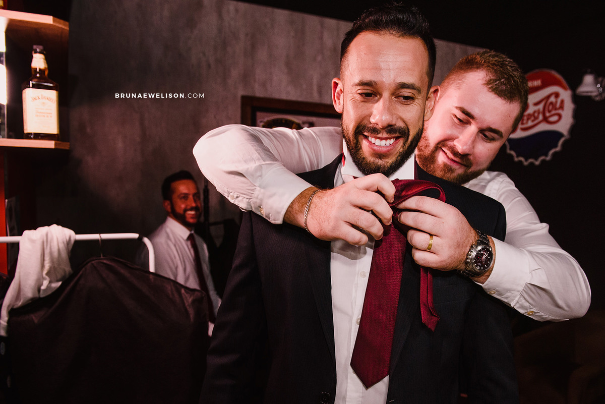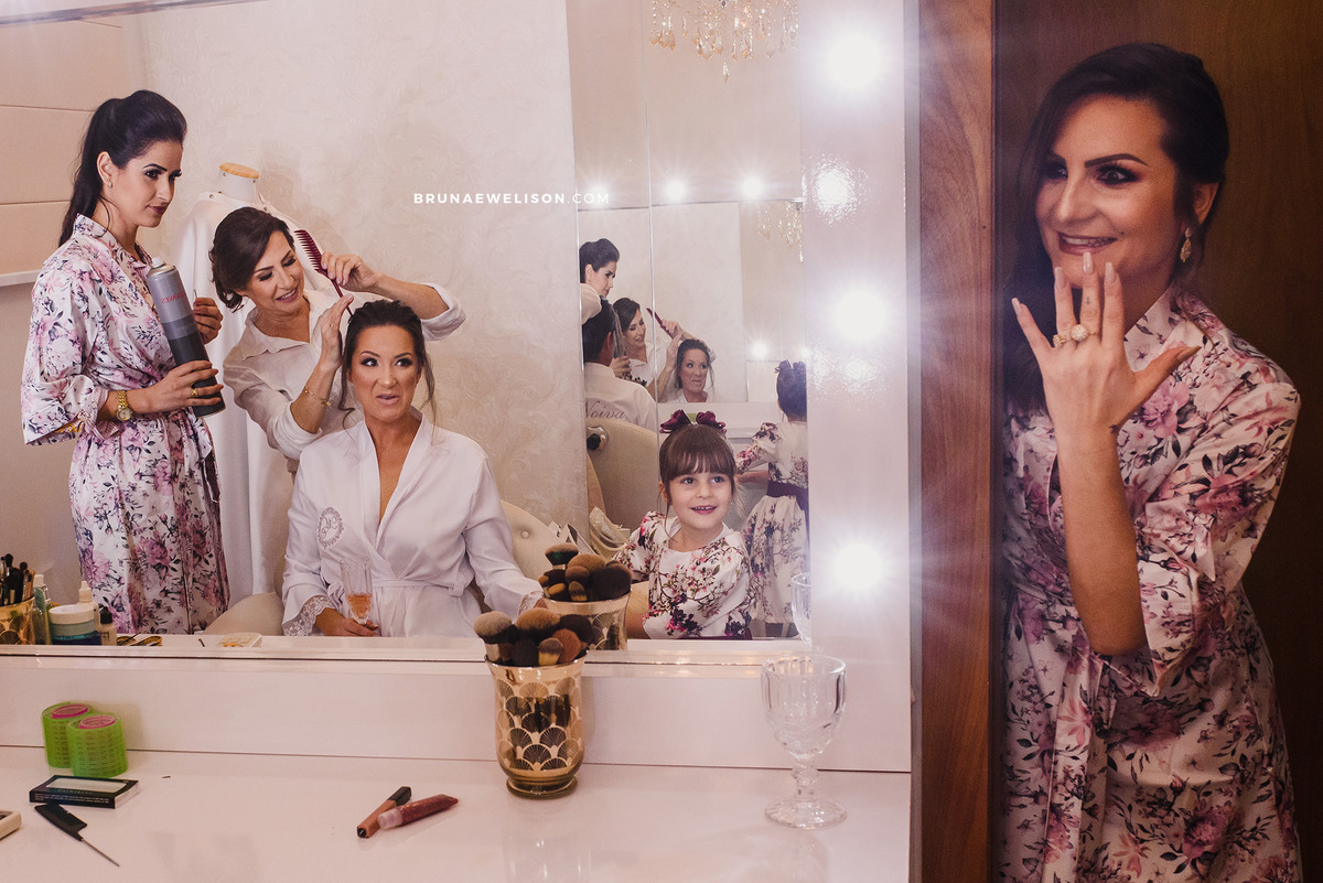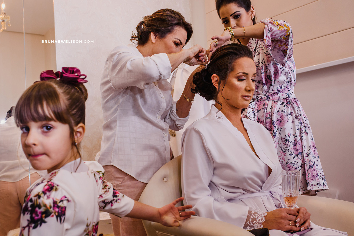 Sabe quando contamos nos dedos os dias que precedem um momento, ou quando cronometramos os segundos no relógio? Não faltaram contagens regressivas para o grande dia da Mari e do Clédio, não faltou AMOR. Esses dois tem uma história de encher os olhos de lágrimas. Duas famílias muito parecidas, com princípios semelhantes, que se juntaram para se tornar uma só. Isso se mostrou muito forte na Mari e no Clédio desde nossas primeiras conversas. Foi um dia preparado com muito carinho, um dia para marcar esse encontro de duas famílias que tem como base, o amor, o respeito, o companheirismo. E tudo foi muito especial. A Mari, que é uma talentosíssima maquiadora, tem um espaço de beleza juntamente com sua mãe. Não poderia ter sido diferente esse making of: um lugar familiar, carregado de boas vibrações, onde nossa noiva teve o prazer de ter sido arrumada pelas mãos de sua mãe, a dona Elaine. E o Clédio escolheu estar junto de seus avós maternos durante esse preparo, também, um lugar especial, carinho de vô e vó (e que avós queridos), e aquele aconchego gostoso de estar em um lugar nada mais nada menos que nostálgico. Foi lindo!