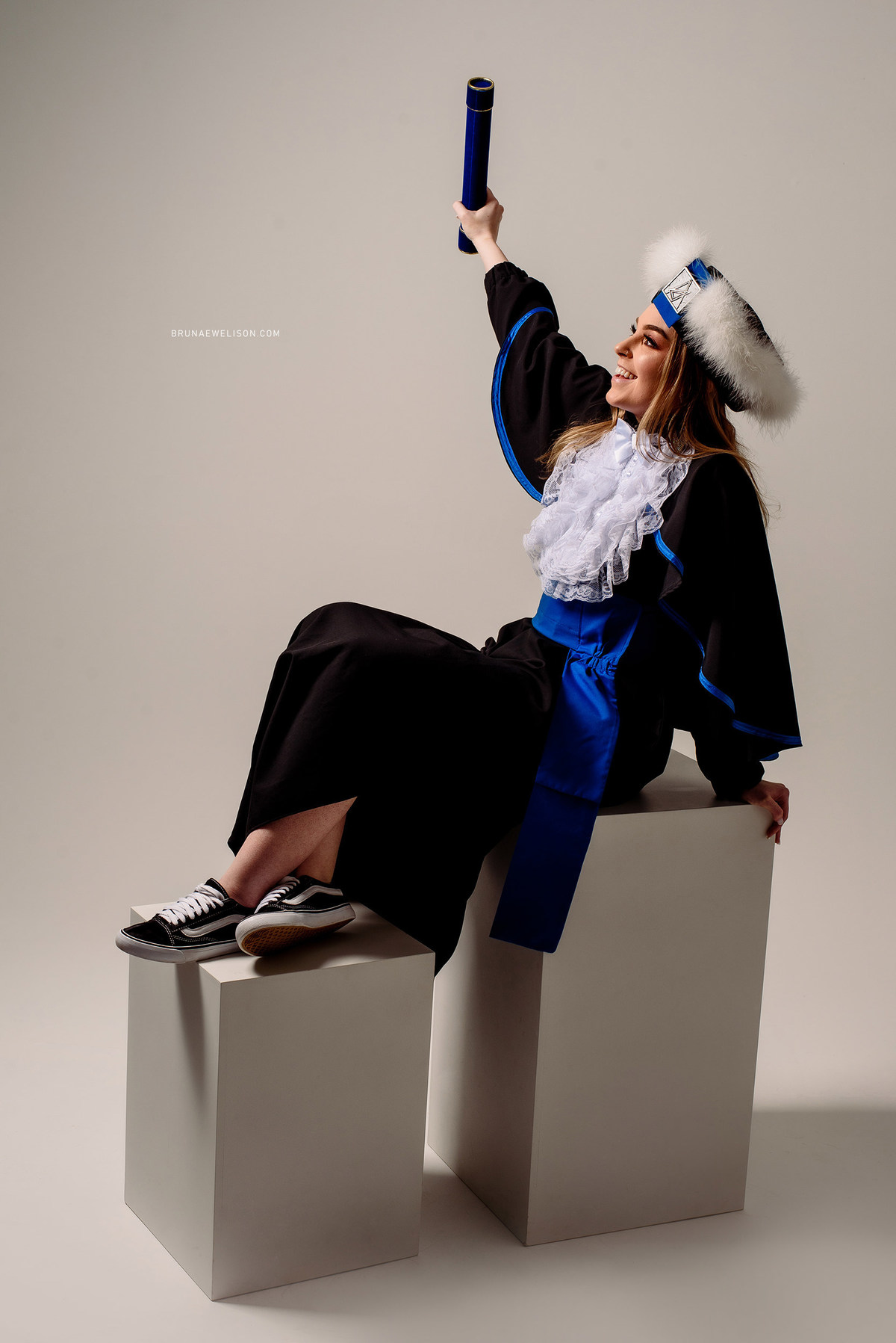 Hoje é dia de mostrar aqui um sonho que se tornou realidade, que em algum momento se tornou um objetivo, e a Karine o concluiu com sucesso. A faculdade de Arquitetura e Urbanismo, uma fase que com certeza marca, e para nunca ser esquecida, eternizamos em fotos. O dia nos surpreendeu, e em meio a dias quentes, o ensaio aconteceu em um dia nublado e frio. Mas tudo tem um porém, e olhando essas fotos conseguimos entender: não importa a cor do céu, não importam as circunstâncias - os sonhos só dependem de nós mesmos para se tornarem reais.